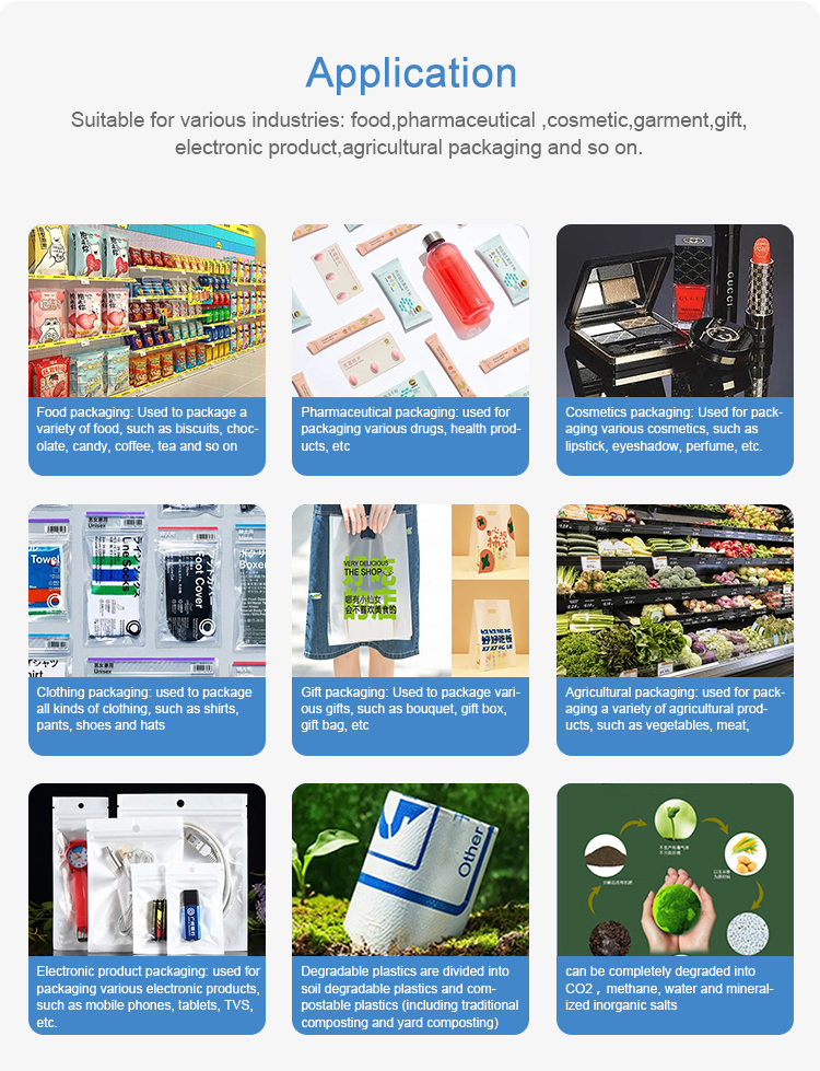 | Main Products | Zipper Bag/Ziplock Bag/Food Bag/Garbage Bag/Shopping Bag |